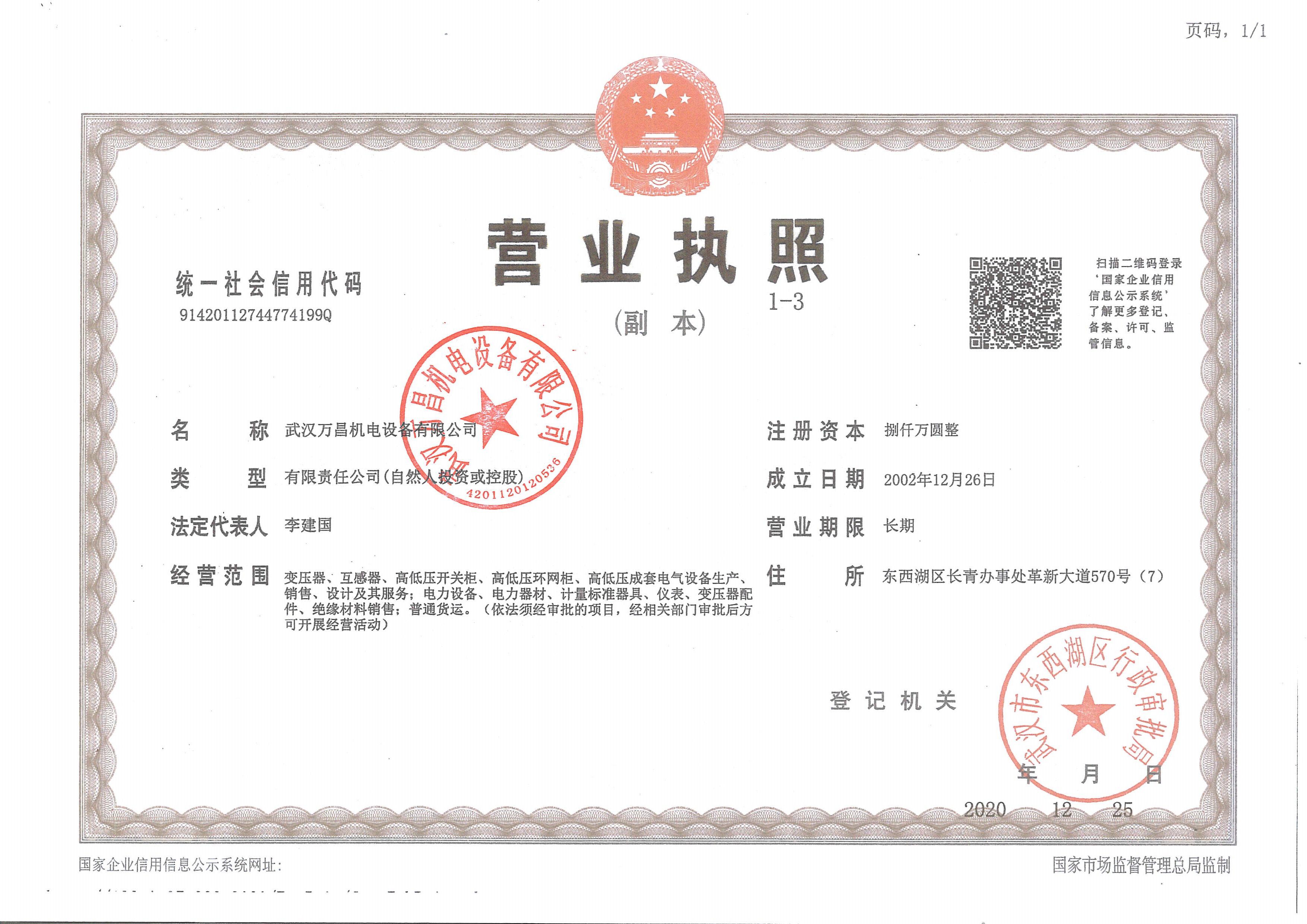 营业执照(三证合一)